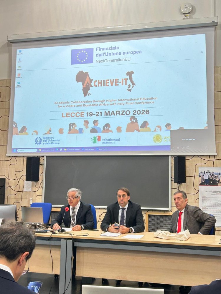 Dal 19 al 21 marzo 2026, presso l’Università del Salento, si è svolto l’evento conclusivo del progetto PNRR-TNE ACHIEVE-IT – Academic Collaboration through Higher International Education for a Viable and Equitable Africa with ITaly, dedicato alla presentazione dei risultati delle attività realizzate nell’ambito della cooperazione accademica tra Italia e Africa.